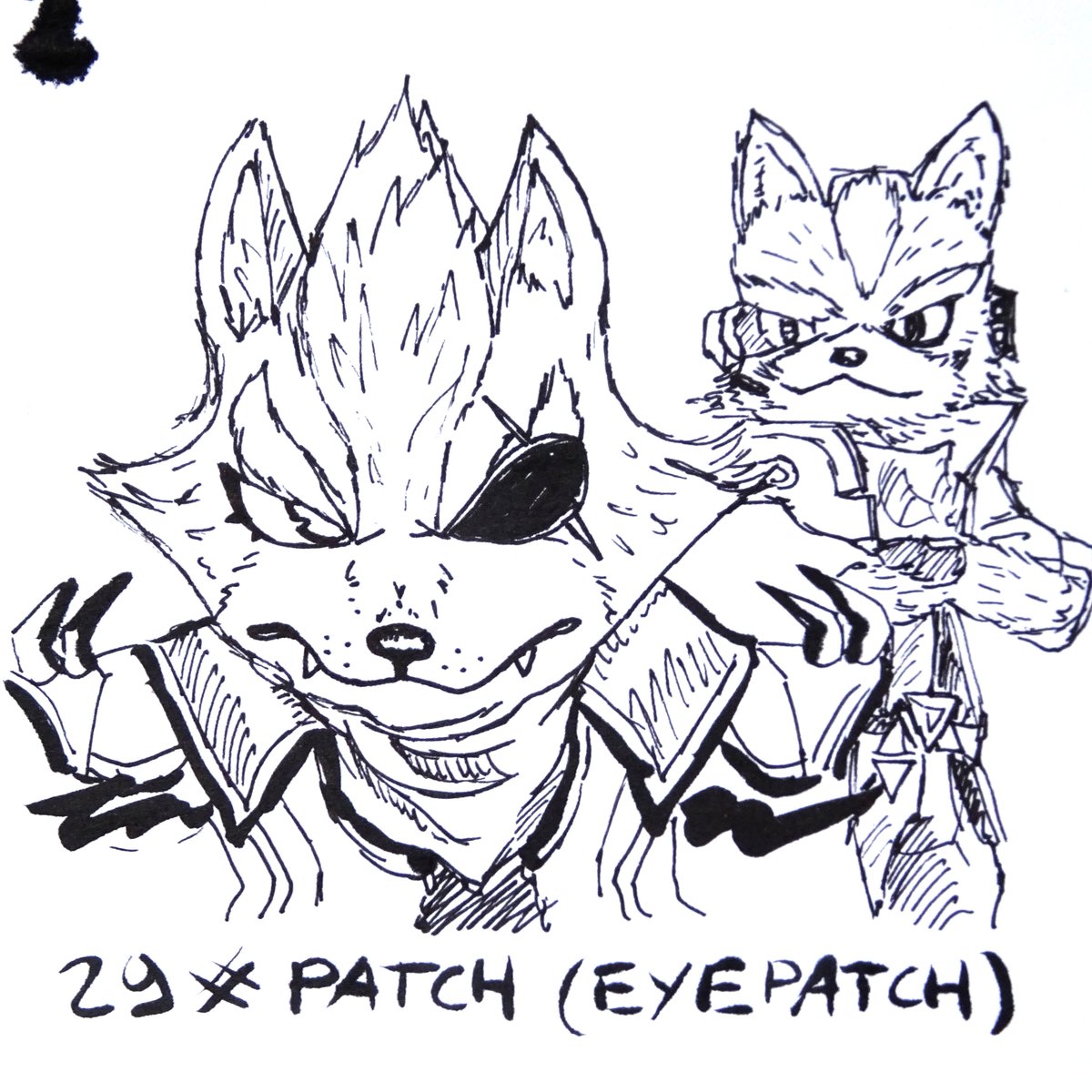 Day 29 - Patch : Wolf O'Donell arbore un "eyepatch". Je suis vraiment content de cette illustration de la rivalité avec Fox McCloud depuis l'école navale de Corneria. Partagez =D #SSBU #inktober2021day29 #inktober #ssbu_wolf #SmashBrosSP #ssbu_wolf #starfox
