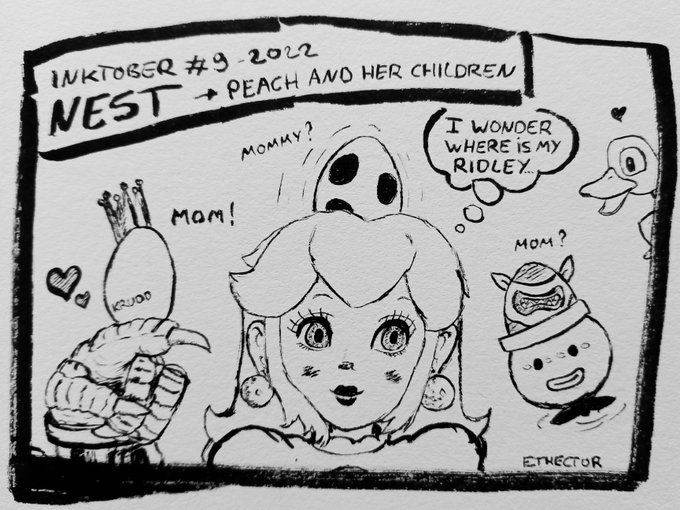 Inktober day 9 ! Peach and her children... #inktober2022day9 #inktober #nintendo #mario #SSBU #SmashBrosSP