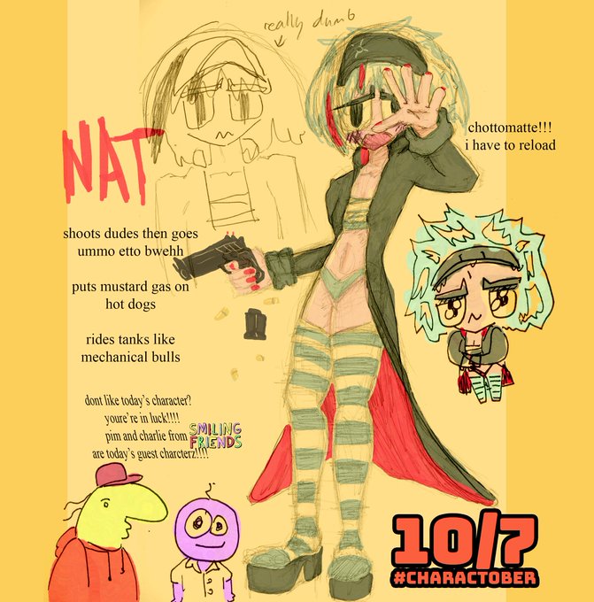 #CHARACTOBER 10/7 - Nat the warzone waifu #art #illustration #characterdesign #anime #smilingfriends #inktober #charactober2022