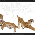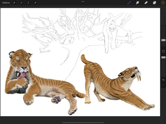 Work in progress with different Smilodon standing study #smilodon #digitaldrawing #procreateart #pleistocene #paleoart