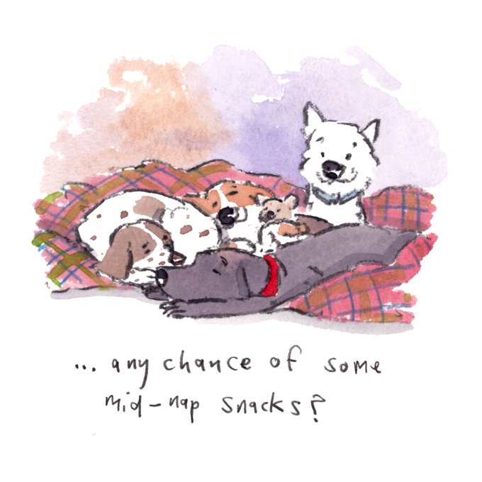 I hope that you are having a really lovely day so far, lovely people and lovely dogs Hooray for good advice from dogs about naps and snacks. If you'd like this print, here is the link for you …in-welch-art-and-design.myshopify.com/collections/fi… I'm wishing you the very best. #hoorayfordogs #naps #snacks