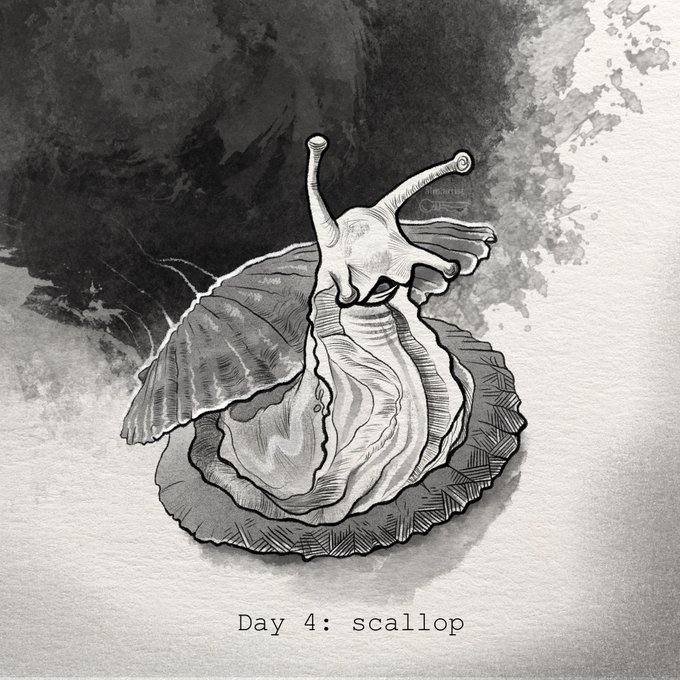 Snaily scallop! 🐌💙🐚 Why snail are main theme in this year? It's pretty simple - I love them from an early age. I've always been amazed by these fascinating creatures. #inktober2022 #snail #illustration #Procreate #ink