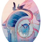 Wisptober Day 16: Clockwork "The clocktower and its keeper, who might not be fully devoid of clockwork themself." #wisptober #snake #clocktower #watercolor