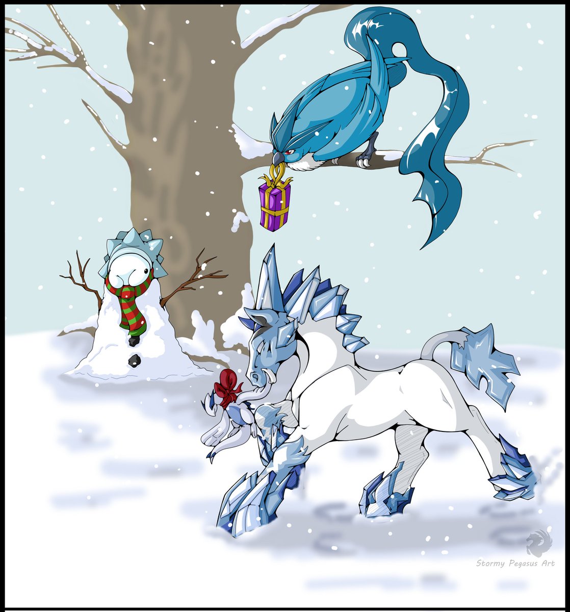 "Well, what do you think?" "Looks wonderful. Don't forget to add the details to my boots" "On it" #Pokemon #fanart #Arceus #Lilligant #Honchkrow #Snom #traditionalart