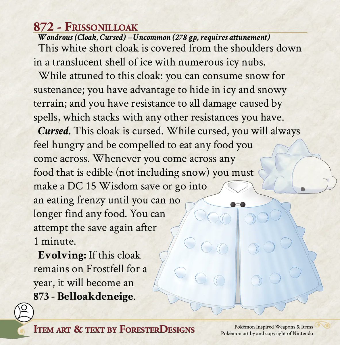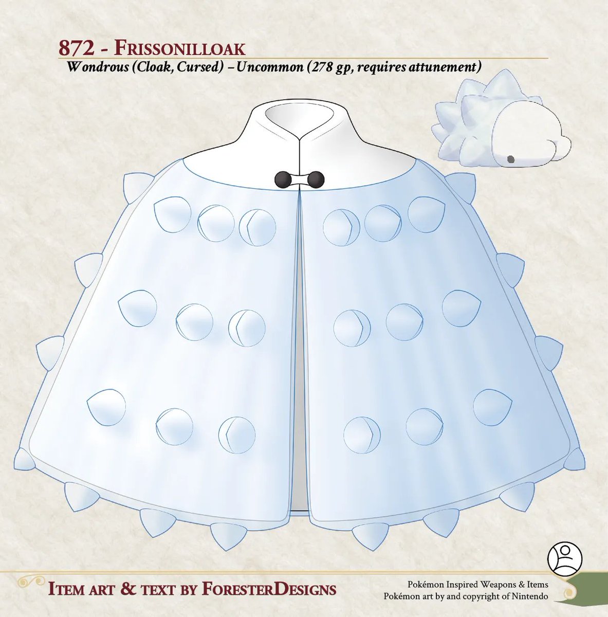 My #DnD #Pokemon #MagicItem of the Day, with a #Snom #cloak of snow protection! Become a Patron to get the full collection and more at buff.ly/3afHNwh #DnD5e #DnDItems #DnDHomebrew #Nintendo #TTRPG #DnDArt #DungeonsAndDragons