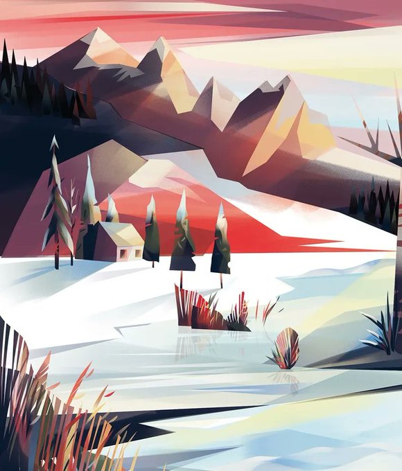 Cozy January days... Illustration by Katalin Eva Pop. Explore more of her work: buff.ly/3f82xVB #landscape #winter #snowylandscape #january #cozy #winterillustration #coloredpencil #editorial #travel #nature #childrensbooks #whimsical #illustration #illustrator #art