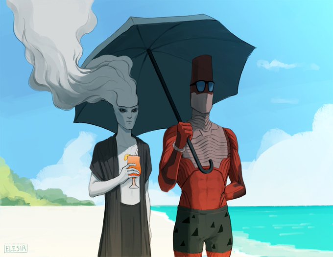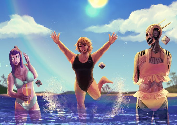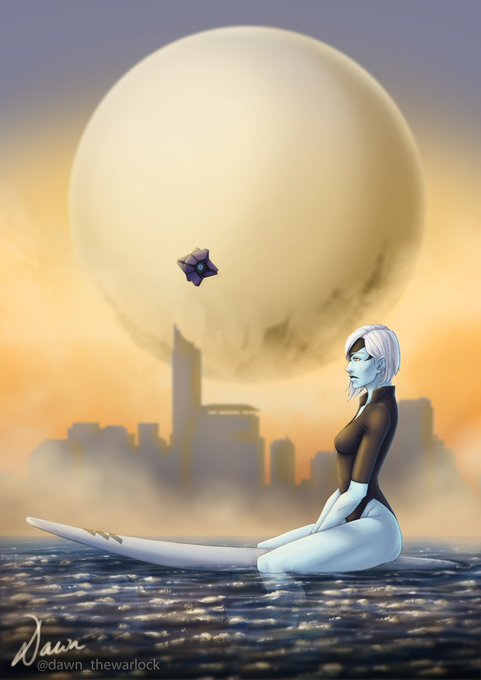 Surfing the vibes of my most recent work to participate in my first @D2ArtEvents #SolarEmbraceVol3 zine!! Because they still deserve some good time of quality 🏖️ #Destiny2Art #DestinyTheGame #AOTW