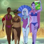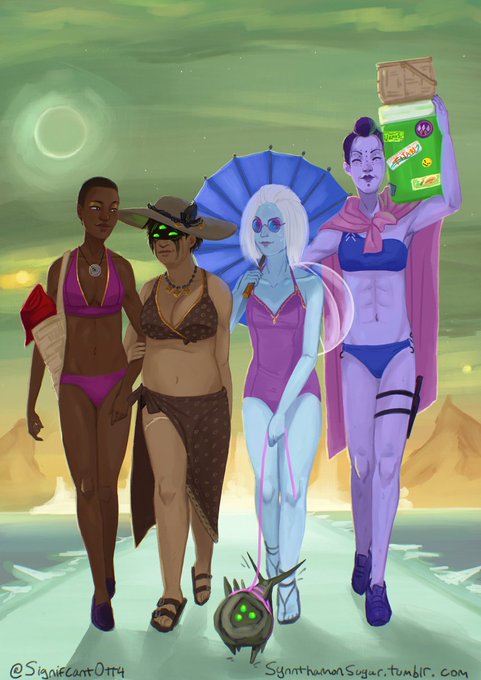 so excited to have had the opportunity to draw for #SolarEmbraceVOL3 by @D2ArtEvents !! here's some goths at the beach (and saint) #Destiny2Art