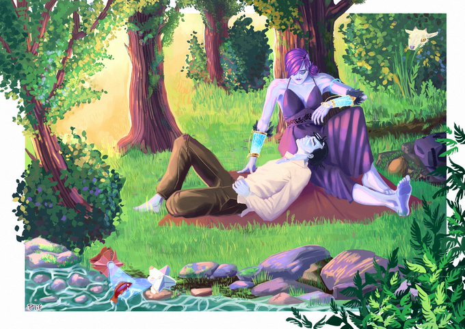 Nap in the sun ☀️🌻 (feat Rin's OC Celestia and Crow) Art echange with @RinDeathless for #SolarEmbraceVOL3 :) #Destiny2Art #Destiny2