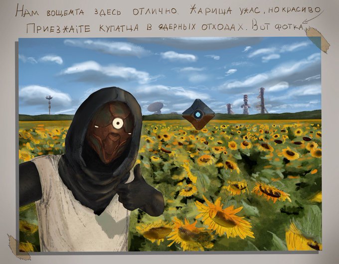 "We good here. Hot weather, nice flowers. Here's a photo. Come swim in nuclear waste." (a slighlty dufferent version of what was in #SolarEmbraceVOL3 zine. good ideas don't come right away) #Destiny2Art @D2ArtEvents