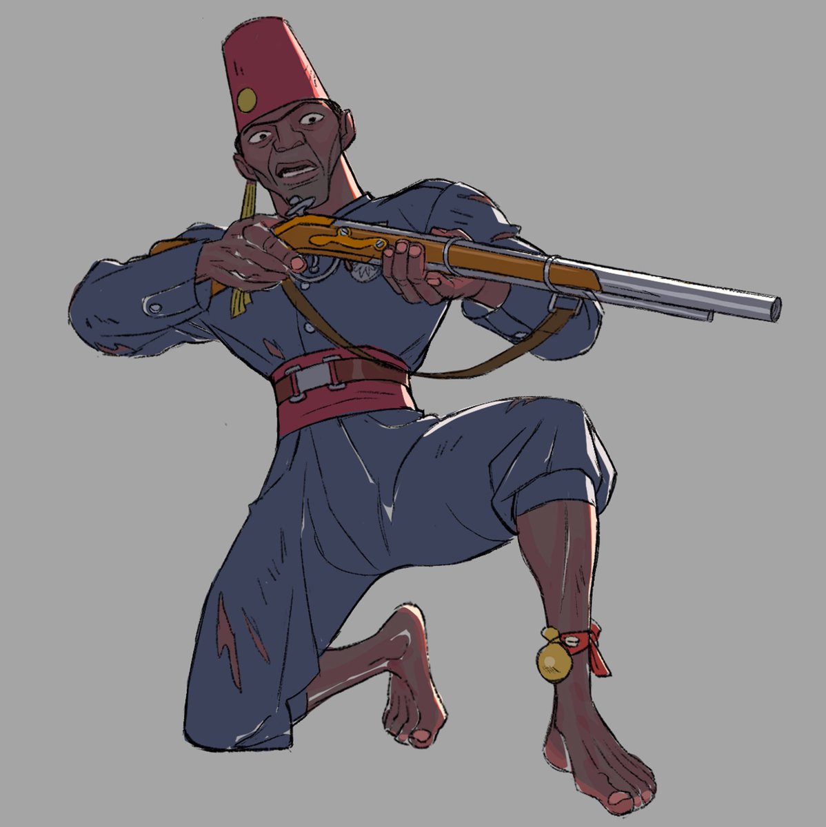 A 1900s African Colonial Infantryman. The juju augments his marksmanship. . #uzomadunkwu #black #african #soldier sketch #sketchbook #drawing #doodle #characterdesign #instaart #study #practice #art #visdev #visualdevelopment