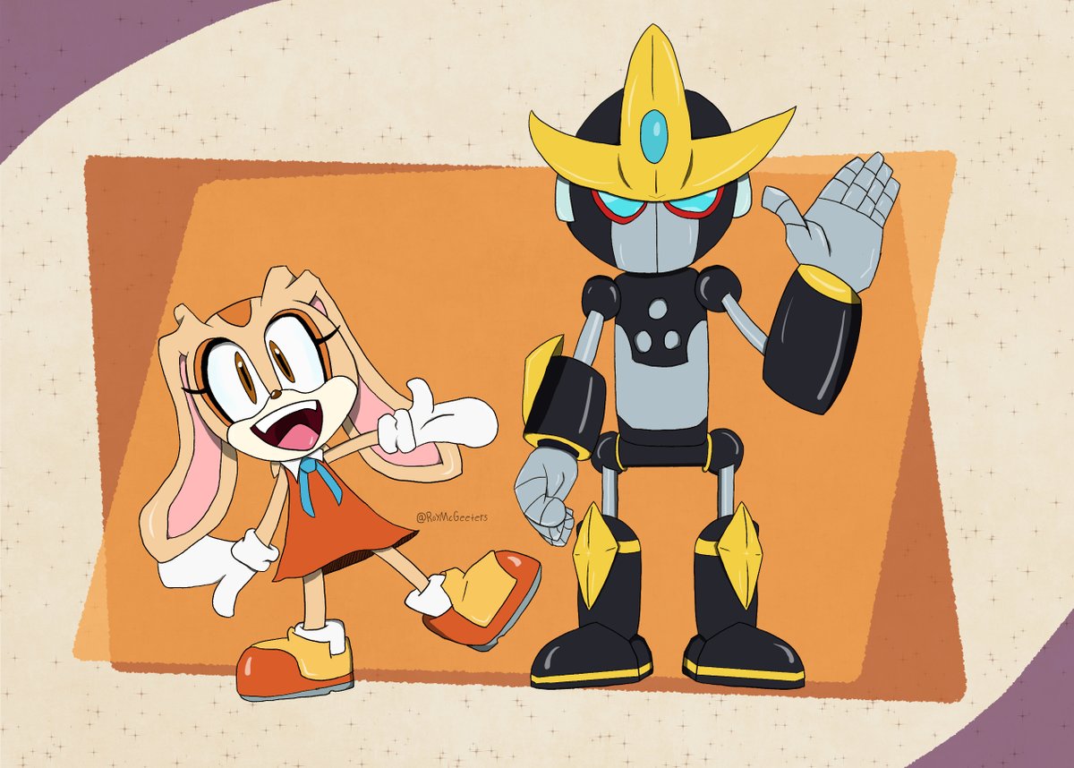 "This is my robot, Gemerl! He tried to destroy the world, but Mr. Sonic beat him up so now he's my best friend. Say hi, Gemerl!" "Ayo, what up" #sonicfanart #cream #sonicadvance #gemerl #SonicTheHedgehog