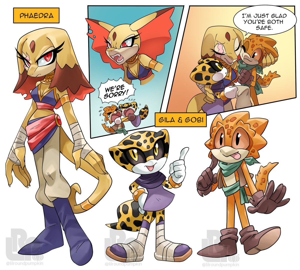 I've been on a Sonic high for a few weeks and made a lizard family! Phaedra the frilled lizard and her adopted kids, Gila the leopard gecko and Gobi the horned lizard! #sonicoc #sonicthehedgehogoc