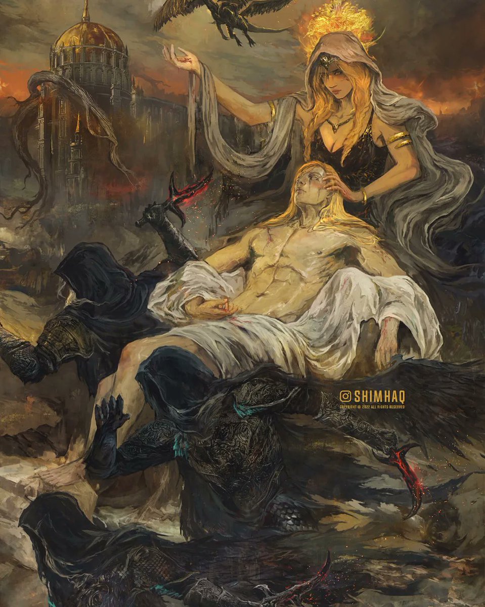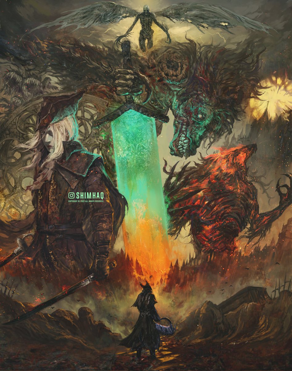 Also a #bloodborne #ELDENRING crossover I did for my fiancé. It was part of the scavenger hunt I made for her that led her to me proposing. I want to redo this one into a proper piece. #EldenRingFanart #engaged #soulsborne #DARKSOULS #fanart #art #RanniTheWitch #cainhurstcrow twitter.com/auroraunity_/s…