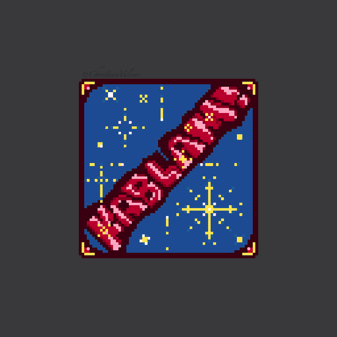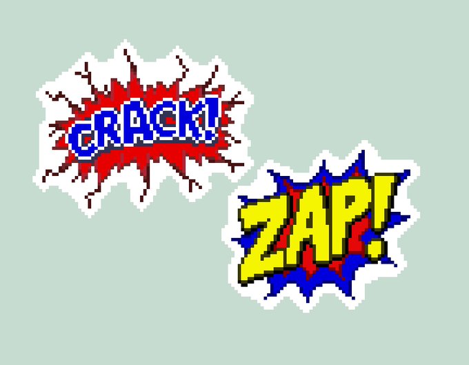#pixelart #ドット絵 #pixel_dailies #SoundEffect Nice. I actually got this @Pixel_Dailies done before work today. I may end up getting a decent amount of sleep tonight. Only 7 colours I think (not incl. the large grey void-space). Kablam!