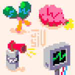 Some classic #SoundEffect-producing objects @Pixel_Dailies #Pixel_Dailies #PixelArt #PICO8 (1484x Streak!)