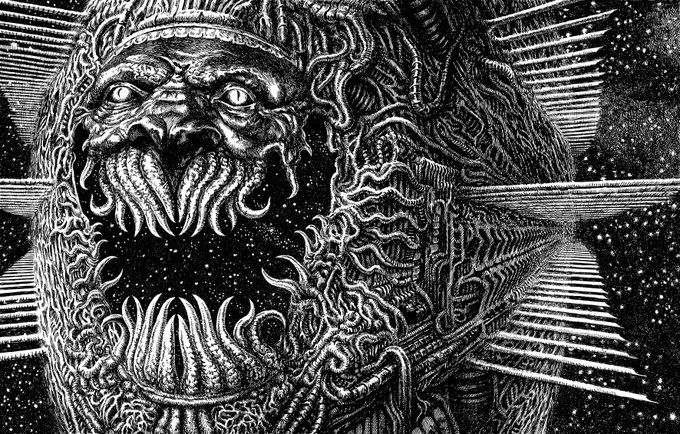 Vaisseau Mange-Monde 😈🪐 (Inspiré par la nouvelle "L'assassin de Dieu" de Pierre Pelot) #illustration #spaceship #ink #sciencefiction
