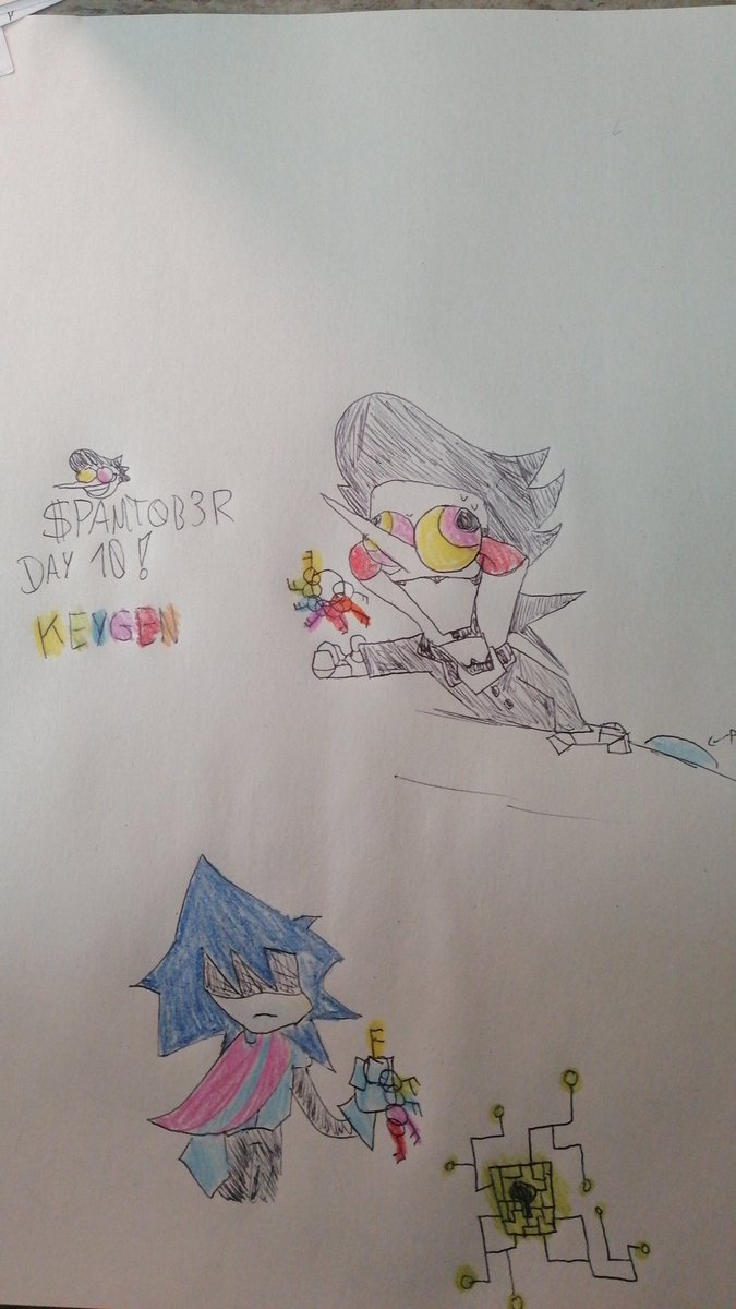 DAY 10 KEYGEN (sorry if it's a bit messy, i don't usually colour my traditional art) #spamton #Spamtober #Inktober2022 #DELTARUNE #deltarunefanart