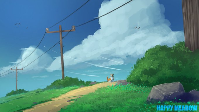 What a happy little Corgi 🥹 63/200 - Happy Meadow #Art #digitalpainting #digtalartist #illustration #speedpaint