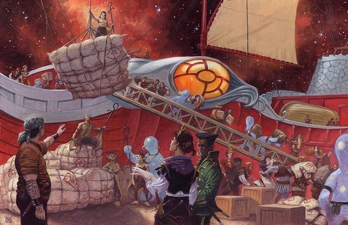 Hammerhead Ship. Oils. Approx 17" x 11". DnD Spelljammer. AD: Kate Irwin. Fell in love with the amoeboic Plasmoids on this one. #DnDArtwork #Spell-jammer #DnDartist #dnd #dndart #oilpainting #fantasyart #fantasyartwork #fantasyartist