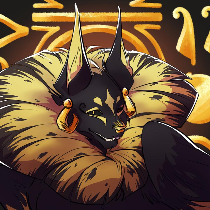 Cartouche 🐈⬛🪙 Zaha for @crym for #artfight2022! I had tons of fun with the shiny gold and BIG fluffy mane for this one~ #digitalart #illustration #sphynx