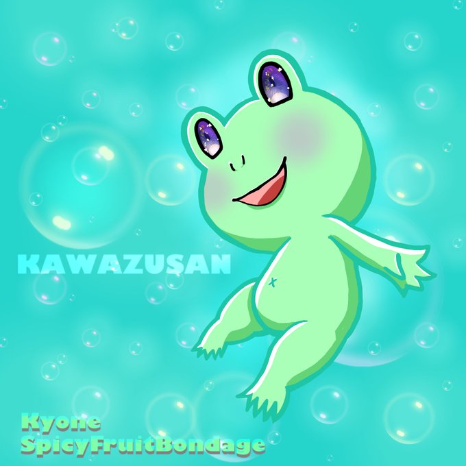 こんにちは。 フォロワー様2000人達成 特別企画 第七弾 きょんさん@kyone_kawazu の かわづさんを描かせていただきました🥰✨ #きょん #ほっこりかわいいイラスト #かわづさん #SpicyFruitBondage