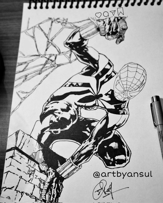 Spiderman❤️🔥 . #wipart #wip #WorkinProgress #commissionsopen #comic #comics #comicbookart #ComicCon #SpiderMan4 #Spidermanart #comicartist #inktober ref from @DFinchArtist . instagram.com/artbyansul