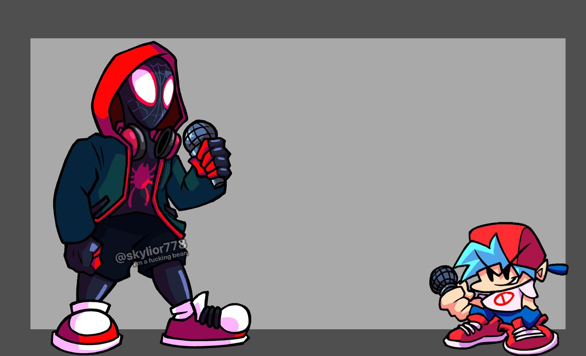 4 random characters that you guys suggested. (6/8) Miles Morales from #SpidermanintotheSpiderVerse Uncanny mr incredible The blob form #fnafsecuritybreach now stfu about him And Sam from #Samandmax #fridaynightfunkin (there is a link below where you can send suggestion )
