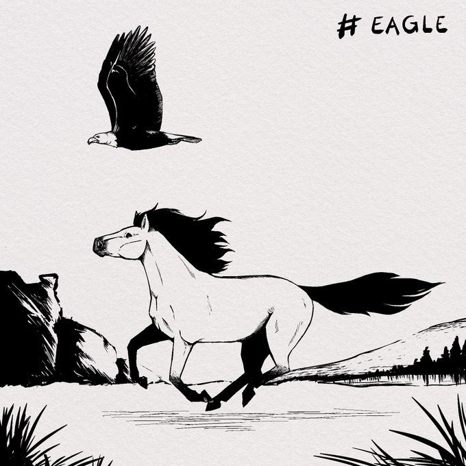#inktober2022 day 11: #eagle "Racing with the eagle, soaring with the wind. Flying? There were times I believed I could." - from the fantastic movie #SpiritStallionOfTheCimarron #inktober2022eagle #horse #procreate #digitalart #drawing