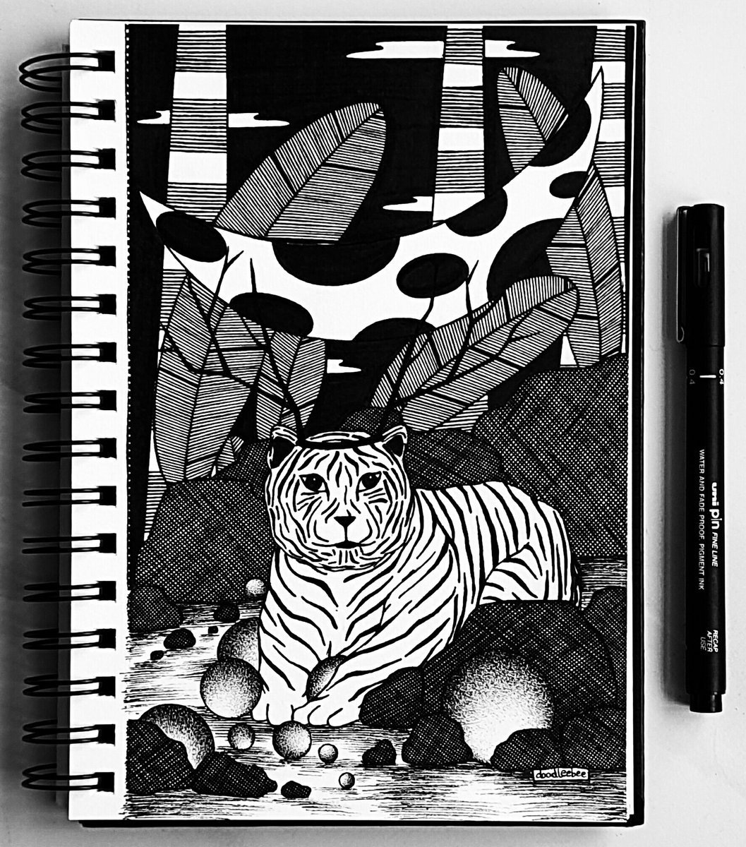 Inktober Prompt 7 - #Tiger #Doodleebee #inktober52 #inktober2022 #inktober #spiritanimal #doodle #art