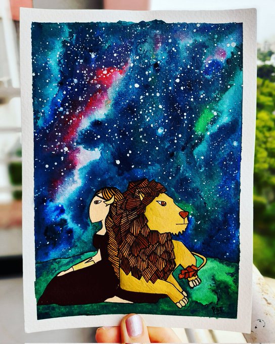 On her journey, she connected to a part of her self that roared no matter what, that refused to give up, that chose to shine & sparkle even in the darkest of times. She chose to step into her own power. #Doodleebee #watercolor #artwork #art #lion #leo #spiritanimal #painting