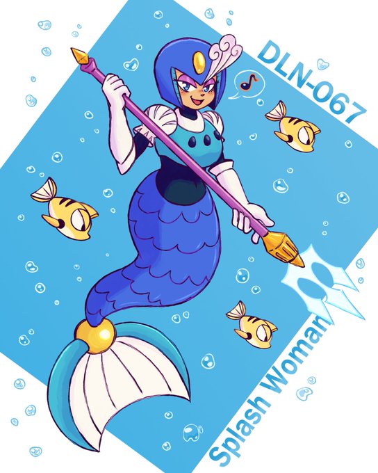 #ロックマン #MegaMan #Rockman #ArtistonTwitter #MegaManClassic #SplashWoman #mermaid #mermay What if Splash Woman had a pet half-fish-half-cat/merlion?