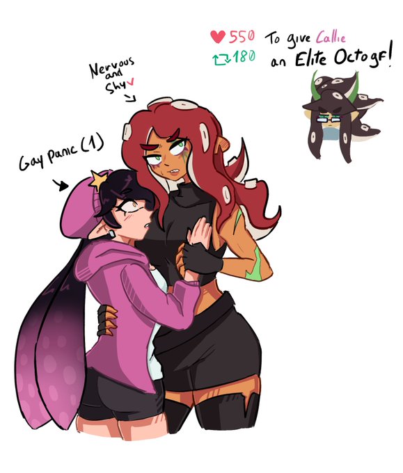 Callie minigame part 2! Meet Marcelina , she's a shy and nervous big softie.. Even if she looks scary! Callie is totally in awe! 👉👈💗💗 Their date went well but Callie have enough love for more than one woman! #Splatoon3 #splatoon3art #calliesplatoon #squidsisters