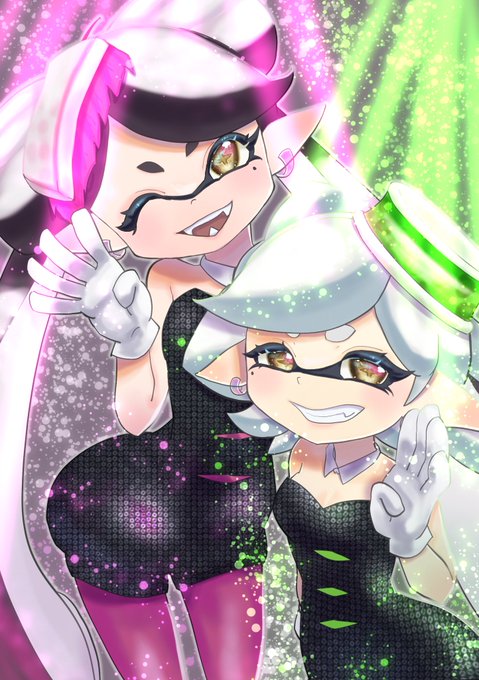 it is splatoon's anniversary. here is the first squid sisters i drew along with the latest. #splatoon #Splatoon8周年 2015 2023