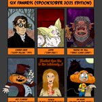All of my #Spooktober2021 drawings. I had so much fun doing these this year; Halloween always jumpstarts my creative drive 🎃🎨🖼🖤☺ #spookyfanarts #fanart #SixFanarts #icons #pinups #characterdesign #styleexperiment #halloweenart #HappyHalloween2021