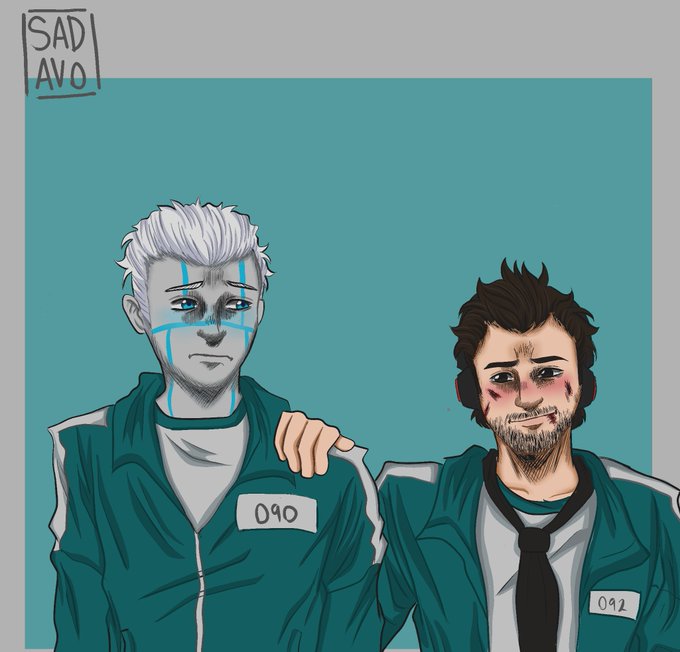 Día 31: libre Bueno aquí les traigo a Reb y John participando en el squid game, este dibujito lo tenía guardado desde hace tiempo cuando Reb había jugado la cosa esa en el roblox y ya porfin pude subirlo, espero les guste 💙💙💙 #SpookyRebornFanarts #FanartsForReborn
