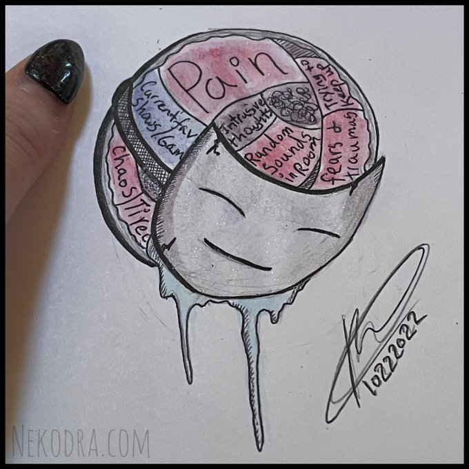 #INKtober Day 22: Facade / Mask And so much more…somehow I forgot to put a giant ‘anxiety’ spot - it probably takes up the whole side you can’t see -wait- it also shares that half with tummy ache. —— I am pulling from 2 prompt lists this year - #Fauntober2022 & #Spookyartober22