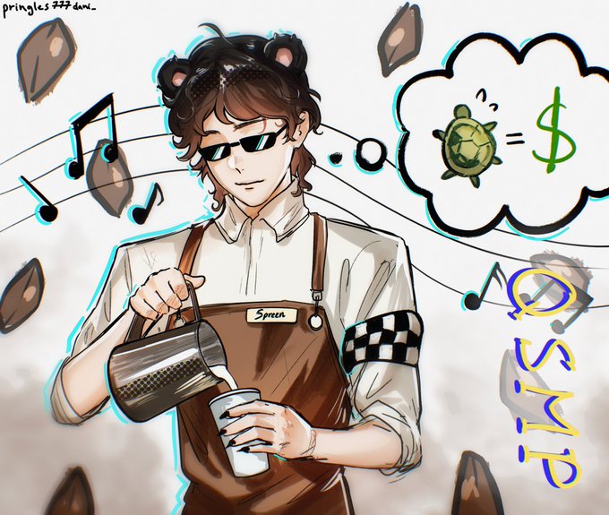 Dibujo de c!spreen pensando en las carreras ilegales de tortugas mientras prepara cafe 🐢☕️🐢☕️🐢 CHAU LOS QUIERO 💖💖💖 #spreenfanart #spreen #QSMP #qsmpfanart