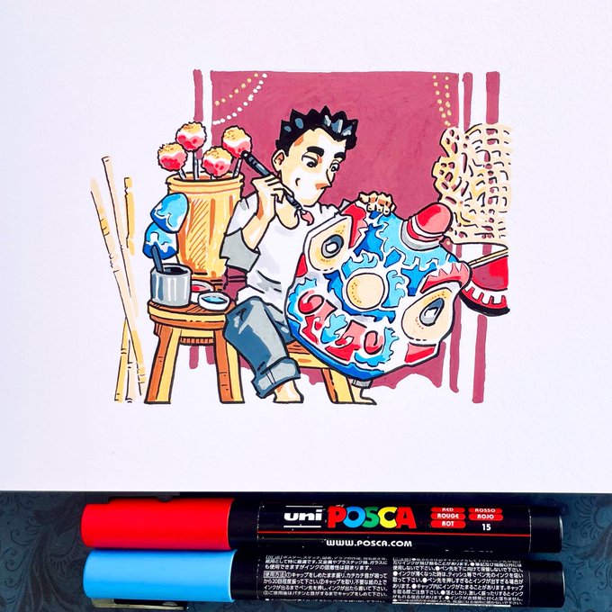 Chinese New Year barely a few days off and all the lion dance troupes are gearing up for the show. So here’s one placing the final painted spots on the lion head he’s making! #illustration #artistsofsea #artistofmalaysia #chinesenewyear #springfestival #cny #cny2022