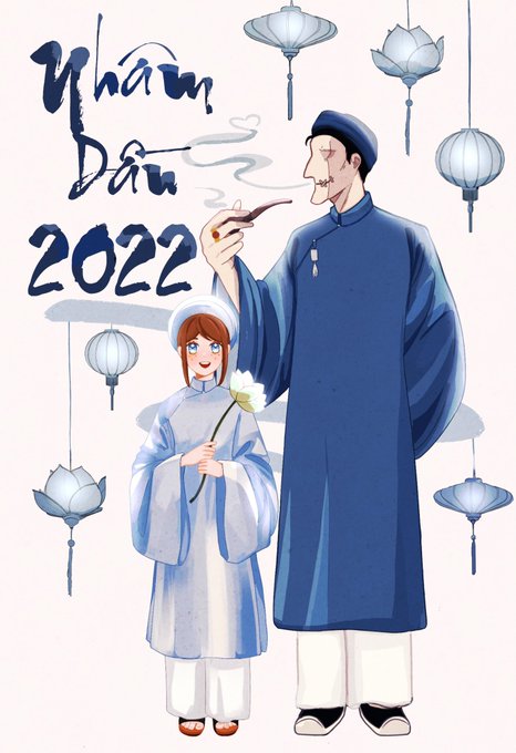 HAPPY LUNAR NEW YEAR!!! It's Tet in VietNam now so i drew Jack and Emma in Vietnamese traditional costume - Áo Tấc (Áo ngũ thân) Wish everyone has a happy new year 🎆🎊🥺💕💕 #IdentityV #identityVイラスト #LunarNewYear #SpringFestival