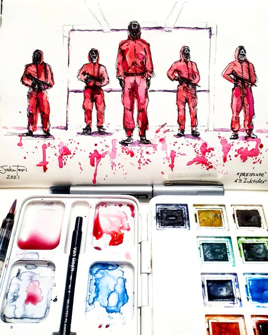 Тема инктобера # 9 "Давление" #inktober2021 #inktober2021day9 #ArtistOnTwitter #artwork #squidgamefanart #SqiudGame