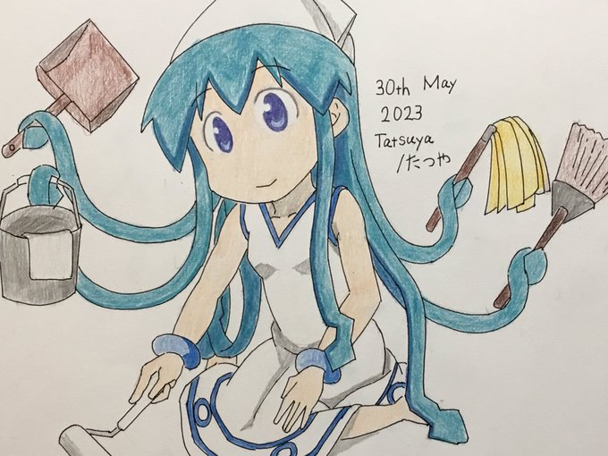 イカ娘 / Squid Girl cleaning the room with various tools For #お掃除の日 / Cleaning Day Ref. Season 1 Episode 5 #イカ娘 #SquidGirl #Illustration #Drawing #イラスト