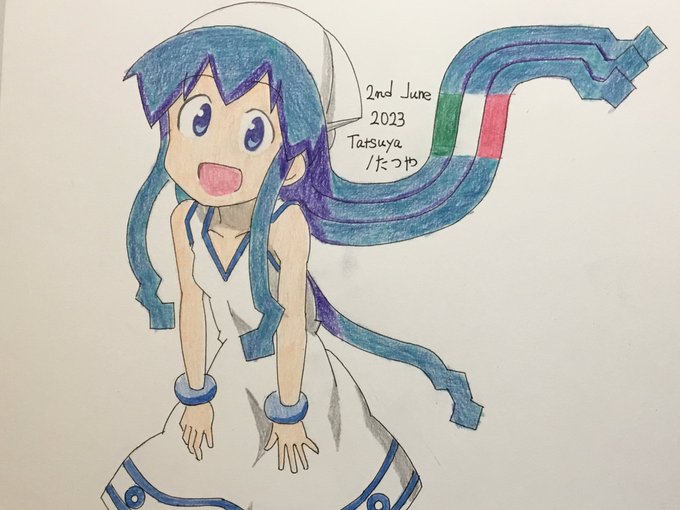 Squid Girl / イカ娘 in Season 2 Episode 1 WHO pulled my tentacles and interfered with my Squid-invasion #イカ娘 #SquidGirl #Illustration #Drawing #イラスト