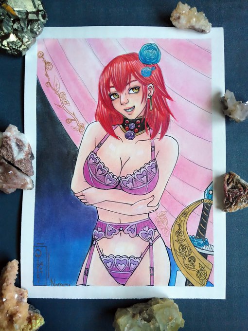 Une pin-up spécial St Valentin pour aujourd'hui a l'aquarelle et crayon de couleur😁 "Natsumi the fatal beauty" #aquarelle #art #originalcharacter #pinup #stvalentin #artcommunity #colorpencil #traditionalart #oc #fantasyart #drawing #artist #illustration #lingeriesensual