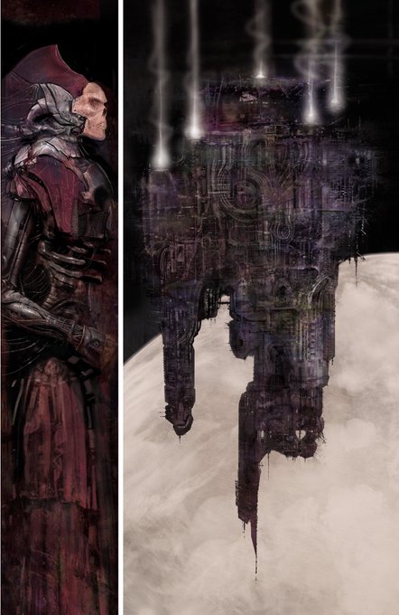 The mechanical Mor-Dread and one of their Giger-inspired space fortresses from #StarHenge - April 2022