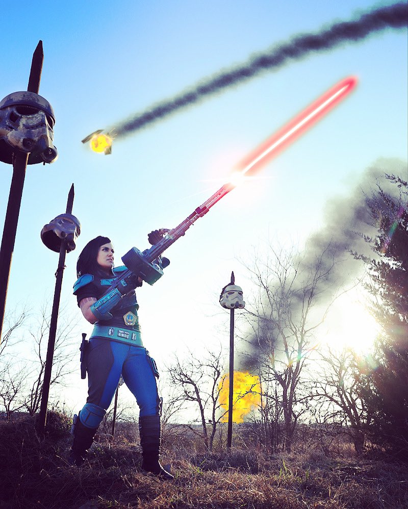 There’s nothing quite like shooting Tie Fighters out of the sky on a Sunday afternoon. | 📸@RenanJago #CaraDune #CaraDuneCosplay #GinaCarano #TheMandalorian #StarWars #StarWarsCosplay #StarWarsCosplayer #Cosplay #Cosplayer