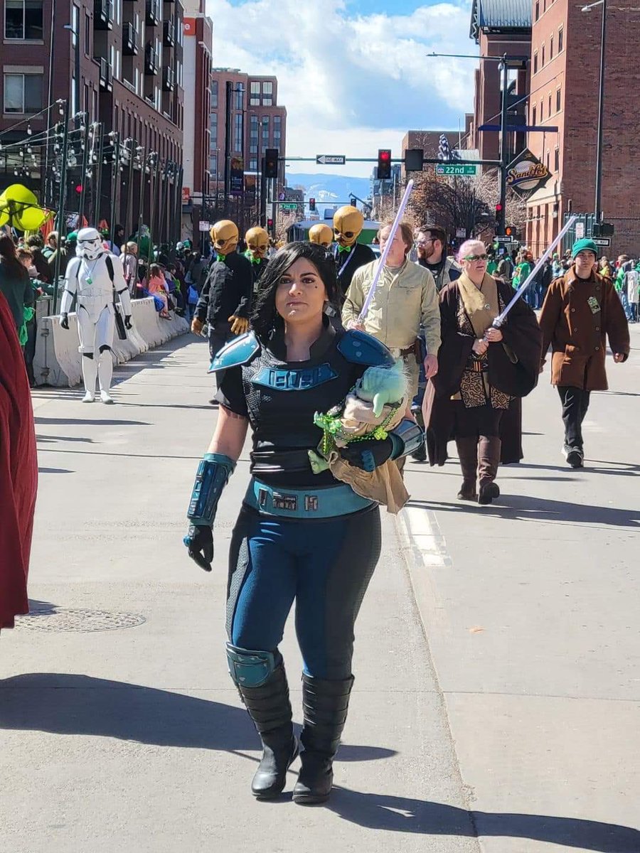 Yours truly participated in the St. Patrick’s Day parade in Denver, Colorado this weekend! What a treat to make so many people (adults and kids alike) smile. #CaraDune #CaraDuneCosplay #GinaCarano #TheMandalorian #StarWars #StarWarsCosplay #StarWarsCosplayer #Cosplay #Cosplayer