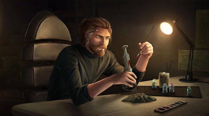 Here is Obi-Wan making a corvette starship toy for little Luke. 🥺 This is based off of an excerpt from the ACPOV book and the short story “Time of Death” by Cavan Scott. I hope we can see a scene like this in the Kenobi series. #starwars #starwarsart #obiwankenobi #kenobiseries