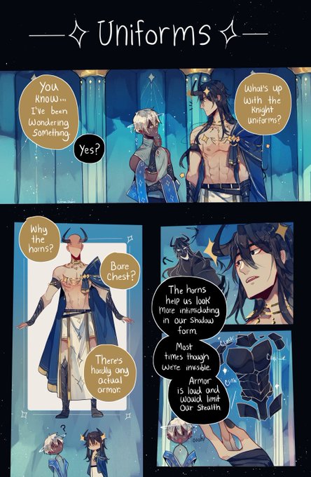 A departure from the mains story for a fun little thing X3 The guard uniforms are mostly based around the need for stealth and free movement! But, also definitely for aesthetics~ #StarCrossed