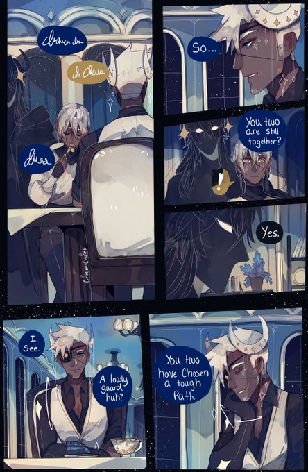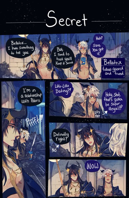 Yildun didn't quite understand what Polaris was getting at! XD But, Polaris finds it funny, and, ultimately can't be mad at Yildun about it since he knows his guard cares for him~ #StarCrossed